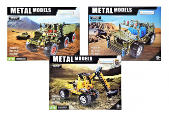 Kovová stavebnica. Možnosť výberu z troch variantov - báger (256ks), vojenský jeep (283ks) alebo vojenské nákladné auto (307). Nevhodné pre deti do 3 rokov. Odporučený vek 6+