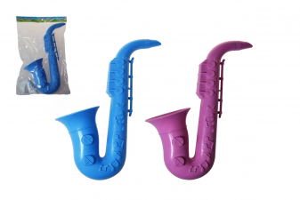 Plastový saxofón. Možnosť výberu z dvoch farieb: modrý alebo ružový. Nevhodné pre deti do 3 rokov.